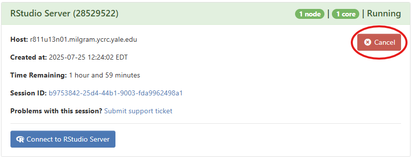 - Number of Hours: How long you need the session to run. Start with a short duration for testing. It is good practice to stop your session when you are finished by clicking on